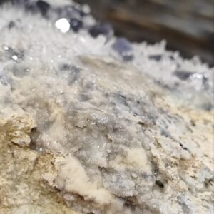 Kvarcas: Baltos arba skaidrios spalvos kristalinė masė, sudaranti pagrindinę uolienos dalį