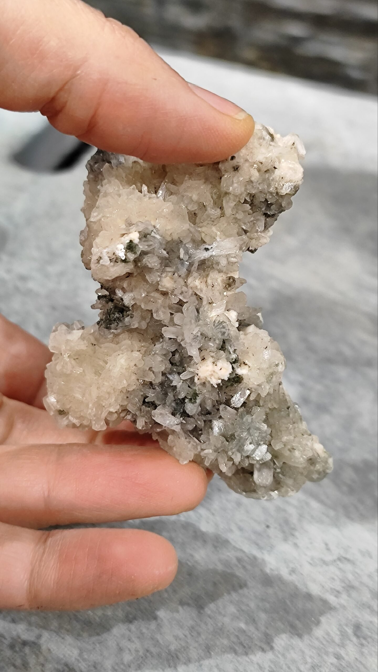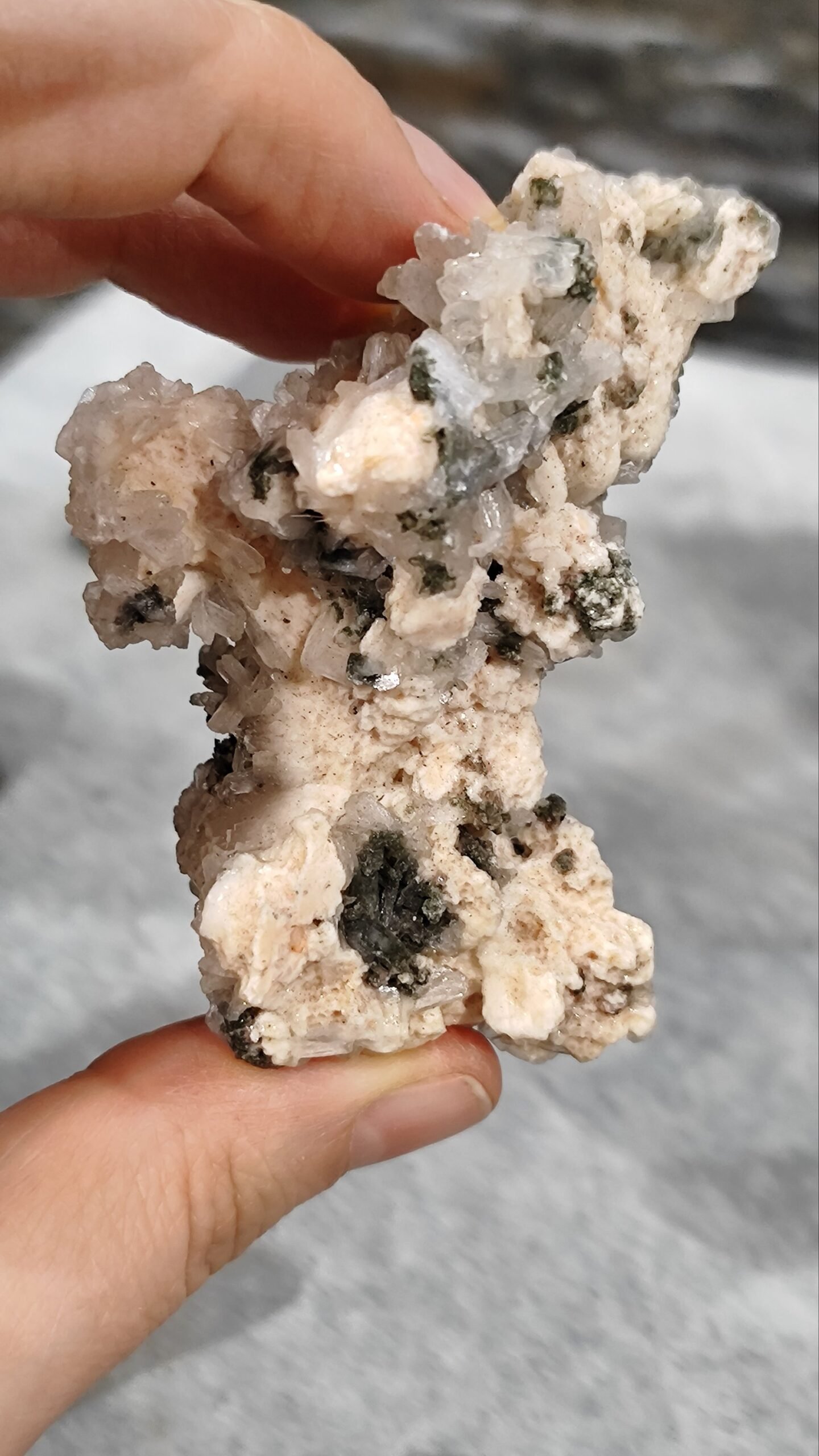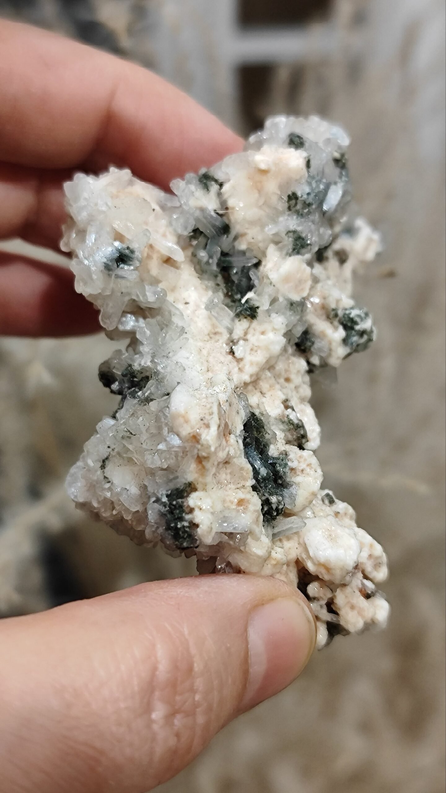Sfaleritas, kvarcas ir dolomitas.