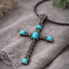 Šis kryžius – tai dangaus žydrumo ir žemės tvirtybės susitikimas. Turkis, dar vadinamas „dangaus akmeniu“, šiame papuošale veikia kaip dvasinis skydas, saugantis keliautojus ir nešantis ramybę. Švytintys markazitai aplink akmenis suteikia papuošalui vintažinio paslaptingumo, primenančio naktinį dangų, kuris įrėmina dienos šviesą
