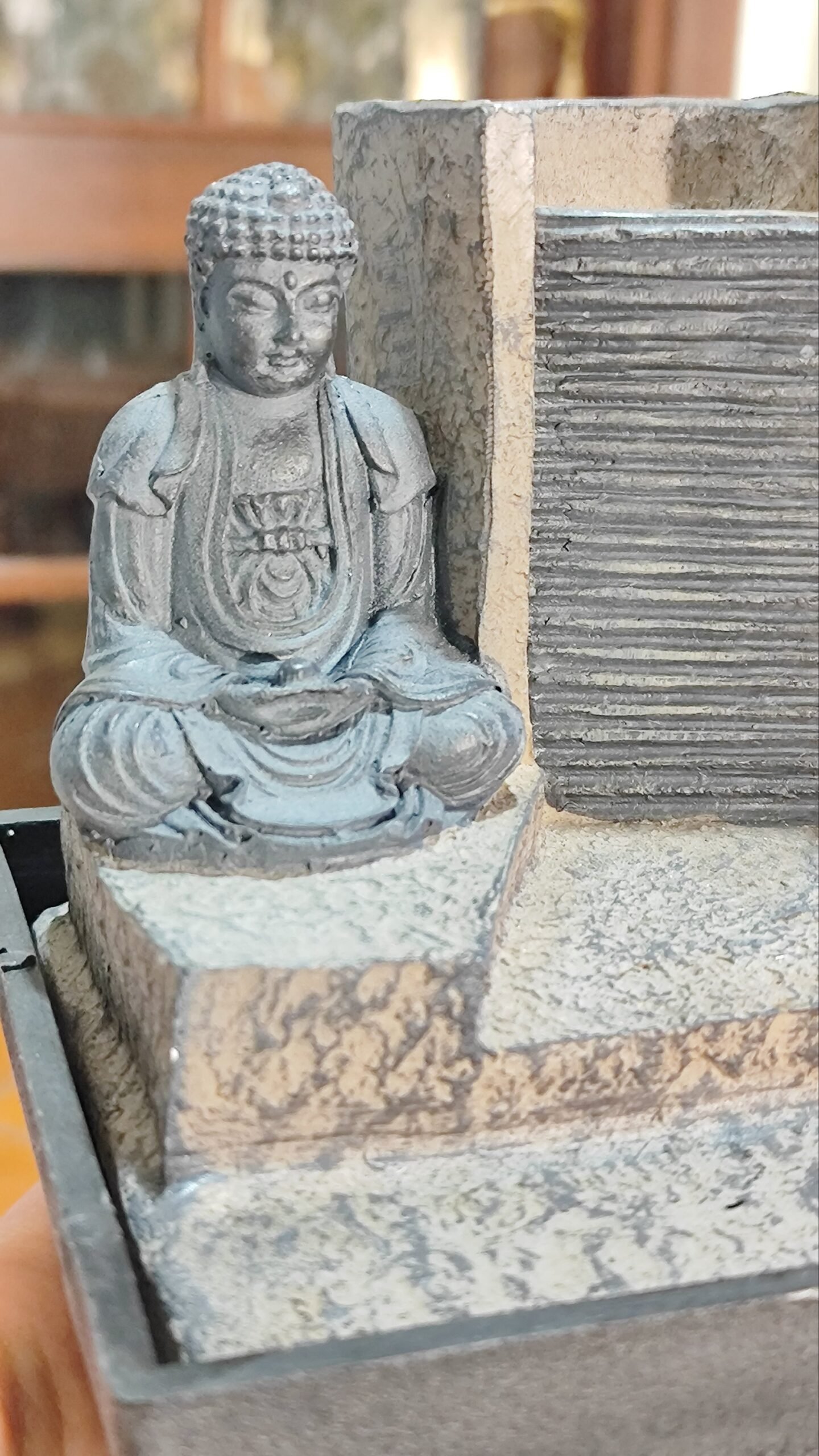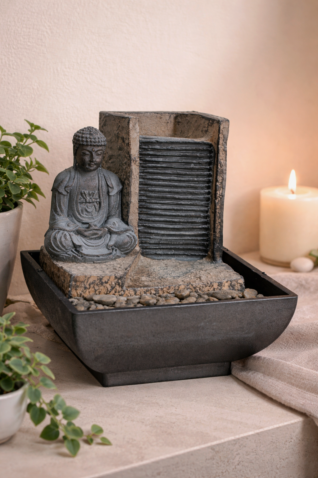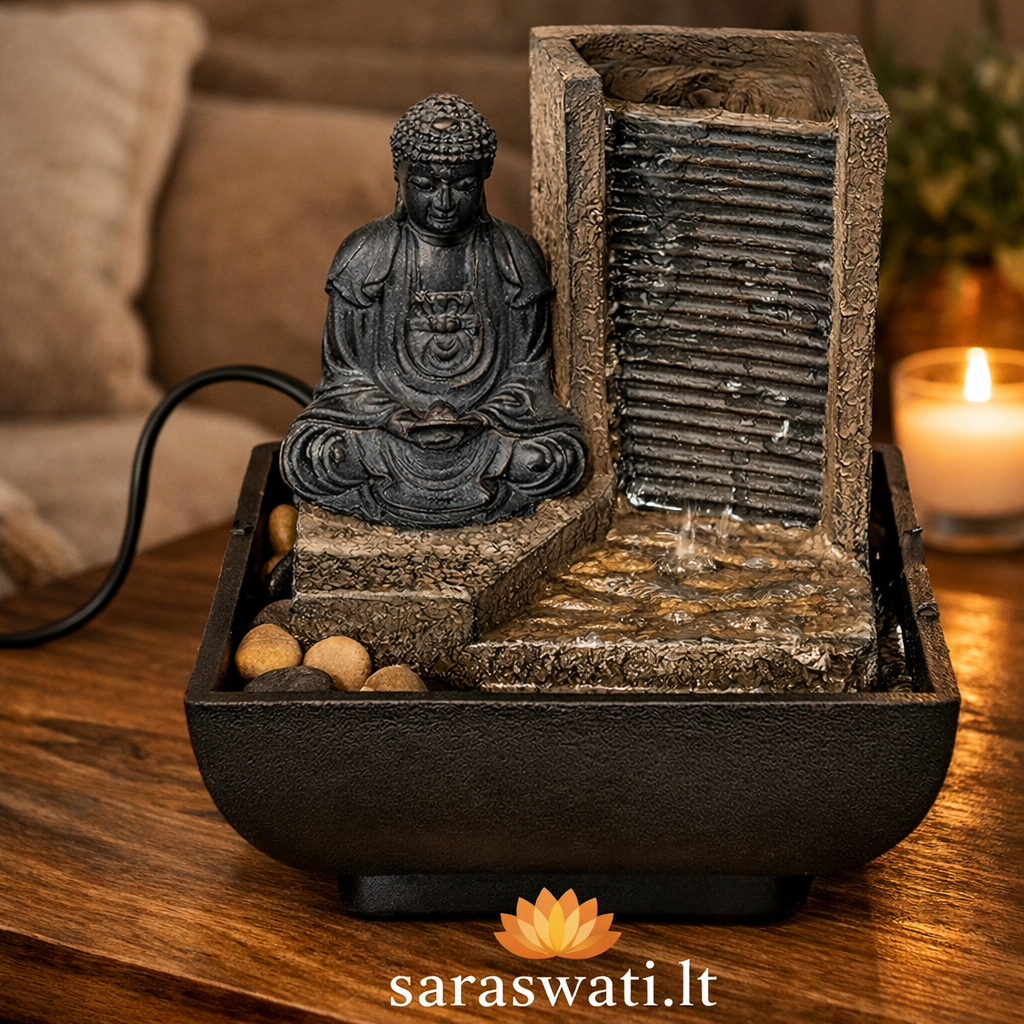 Dekoratyvinis stalinis fontanas, skirtas naudoti patalpose, imituoja raminančius gamtos garsus jūsų namų erdvėje. Fontano vandens srautas padidina Feng Shui jūsų namuose. Galima naudoti darbo vietoje, miegamajame.